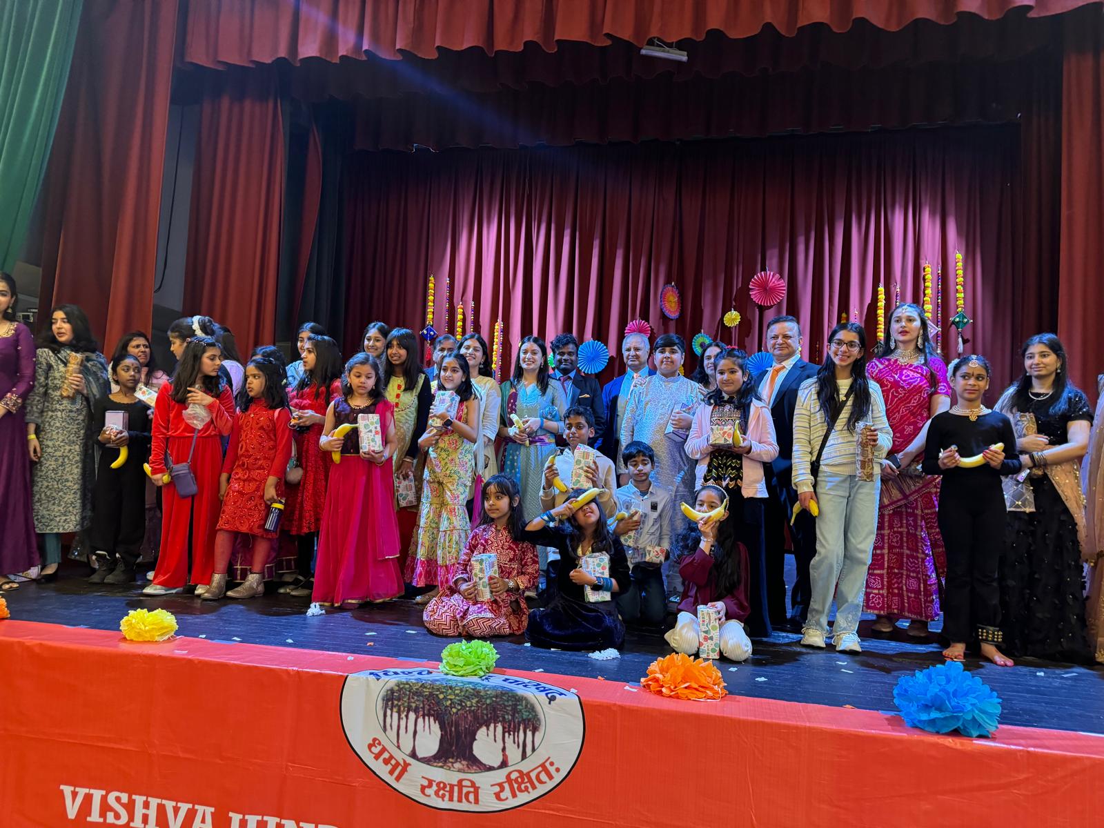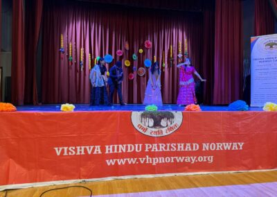 The Vishwa Hindu Parishad Norway (VHP Norway) joyously celebrated Holi at Grorud Samfunnshus, Gårdsveien 6, 0952 Oslo. The event brought together the vibrant Hindu community, filling the air with colors, music, and traditional dances. Families and friends gathered to mark the festival of colors, spreading joy and unity among attendees. The celebration was a beautiful blend of cultural heritage and communal harmony, creating unforgettable memories for all participants.